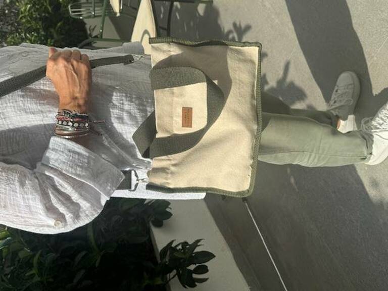 • Ham kanvas çanta, haki biye detaylı